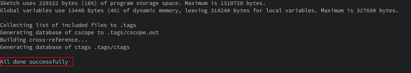 All set. You can then follow the instruction in the previous section to use arduino-cscope-ctags.